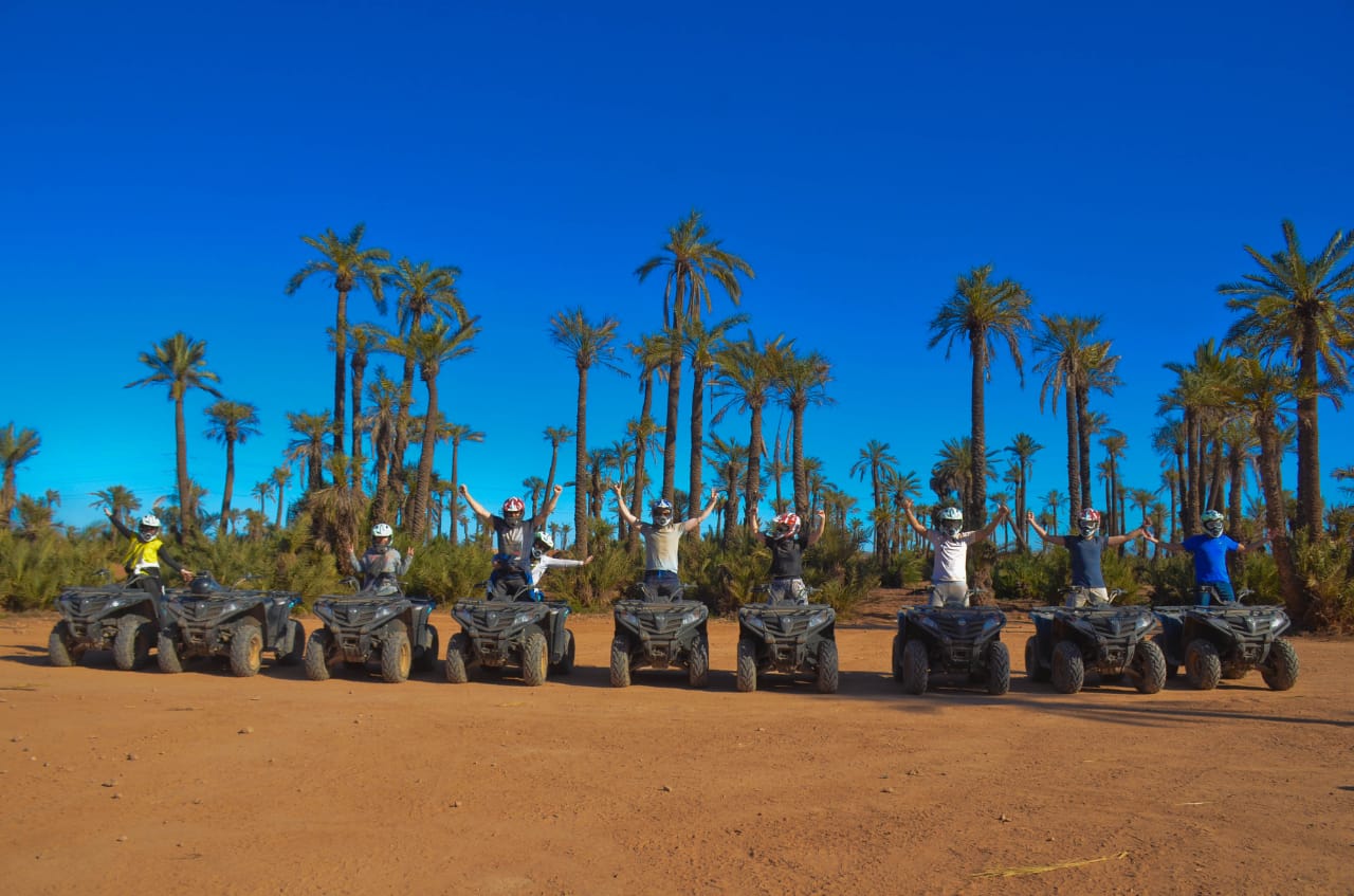 Débutez une aventure palpitante à travers les pistes de la Palmeraie : sentiers sablonneux, oueds asséchés, forêts de palmiers, zones désertiques et villages traditionnels. Le parcours est encadré par des guides professionnels et adapté au rythme du groupe.
